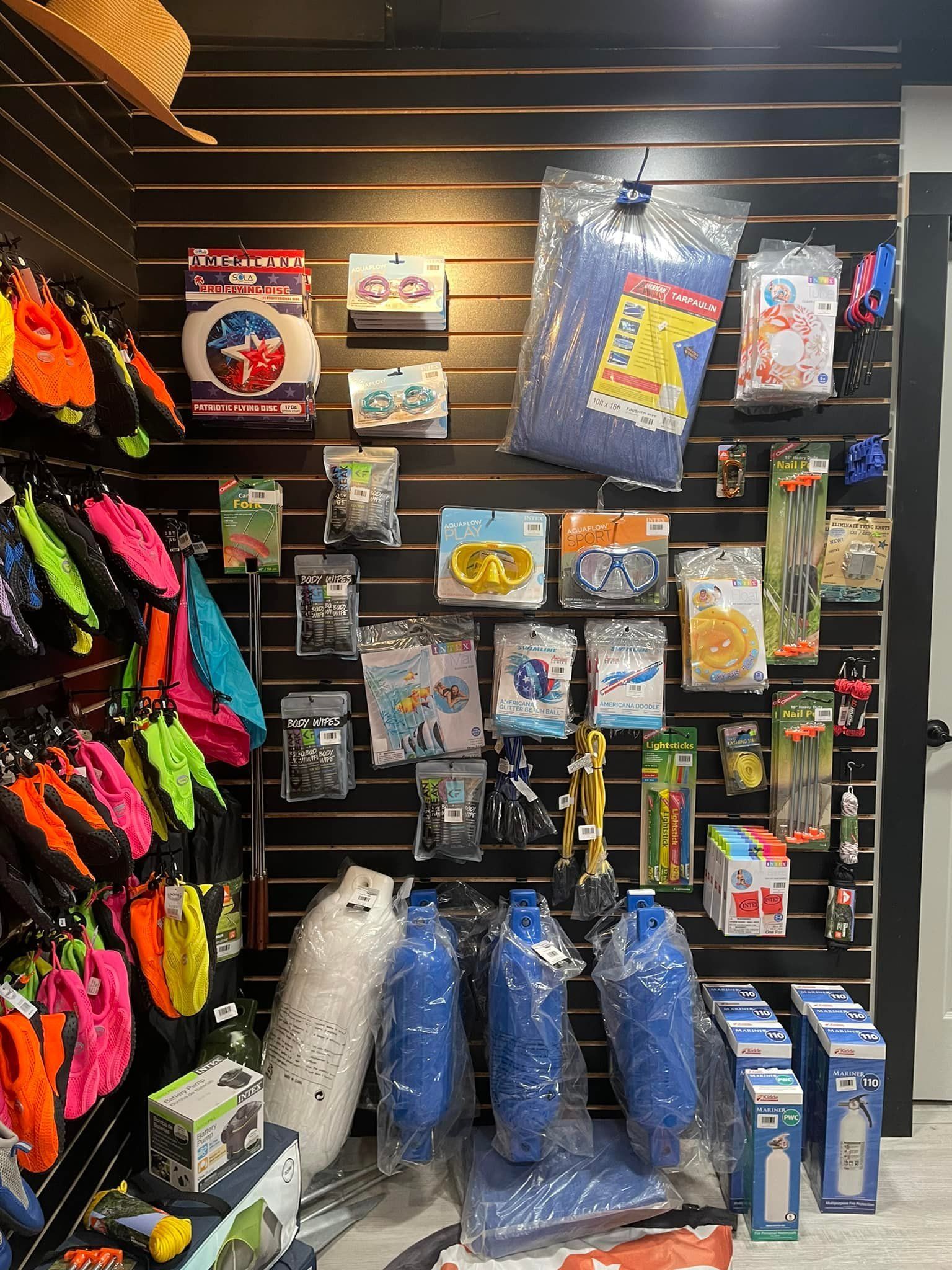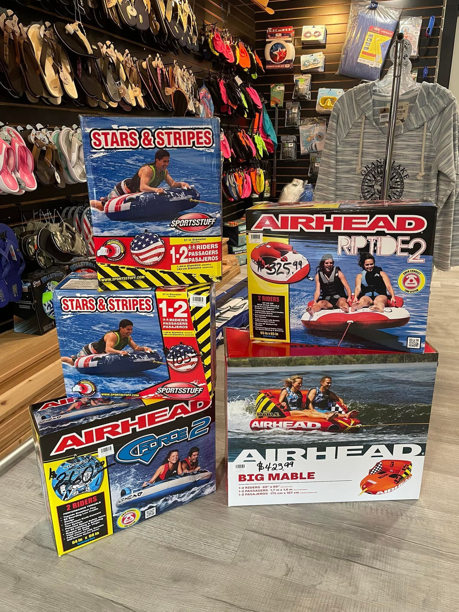 And it's more than just clothing - rope sandals, flip flops, sunglasses, life jackets for all ages, water toys, Big Mable and other towables, jewerly, home decor, nautical gifts, koozies, sunscreen and a great selection of other unique, Grand Lake and Disney themed gifts.